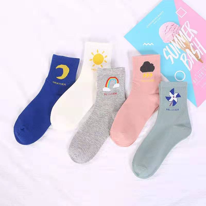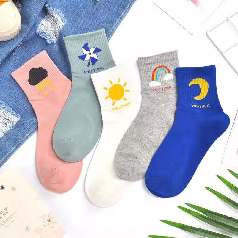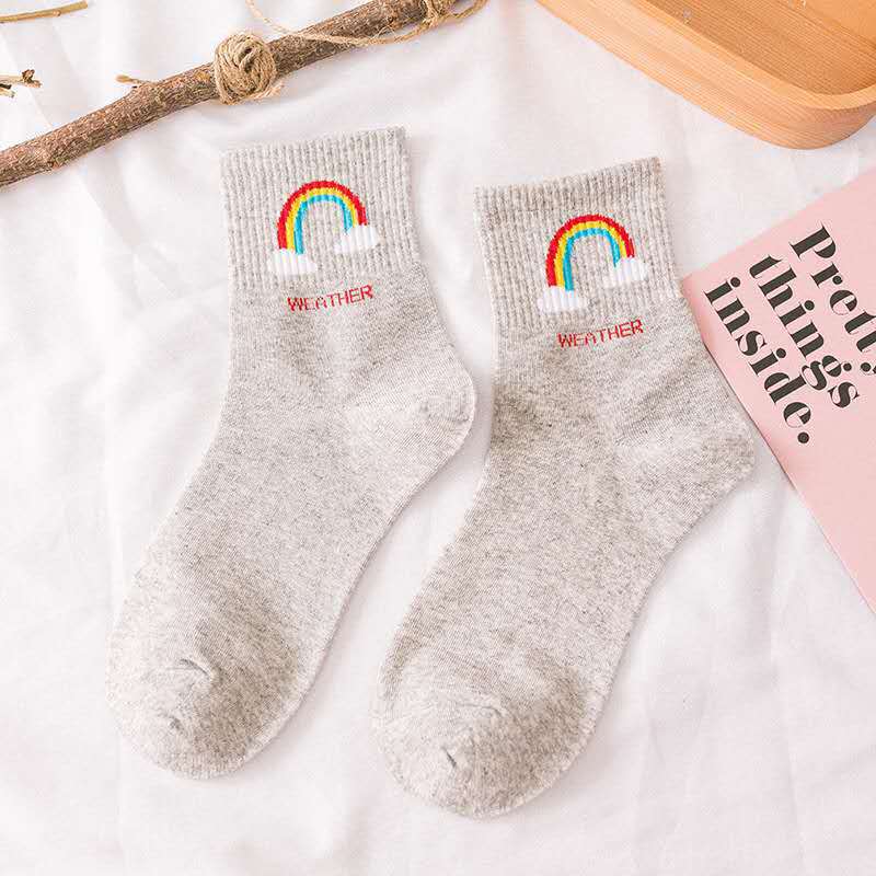 Color๏ผWhite, Green, Gray, Blue, Pink, 5 pairs [1 pair per color] Style๏ผCute Pattern Type๏ผRainbow Material๏ผCotton Fabric๏ผCotton Gender๏ผFemale Size๏ผOne Size